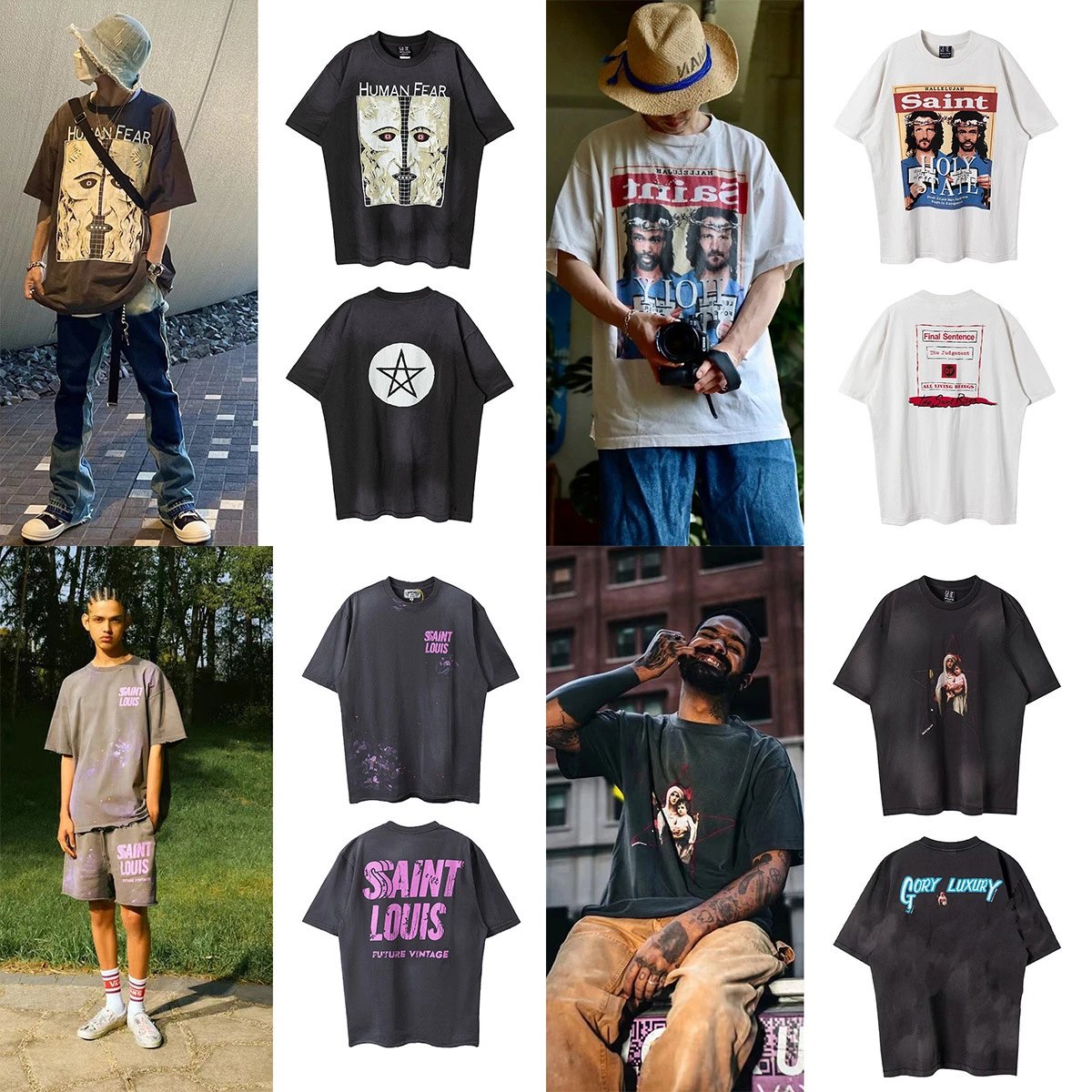 American high street heavyweight washed, distressed, handmade distressed printed loose casual short sleeves